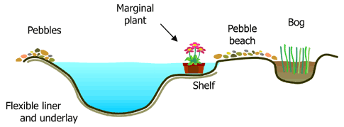 For those with a small pond I recommend digging your pond in the same fashion but you will have to decide what is best. Dig to your specified depth including bog and marginal shelves, and the end opposite of the waterfall,