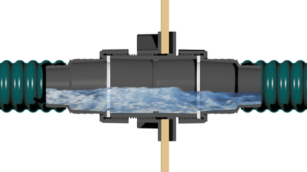 1. b) FOR PIPEWORK - Use one of our Barbed Transition Kits or Threaded Transition Kits to take your pipework through wall as thin as a plastic trough right up to thicknesses of 300mm such as double brick or large concrete or stone blocks. They are designed for flat surfaces and can be purchased with hose barbs or threaded fittings. They come with rubber washers to create a waterproof seal and are easy to install.