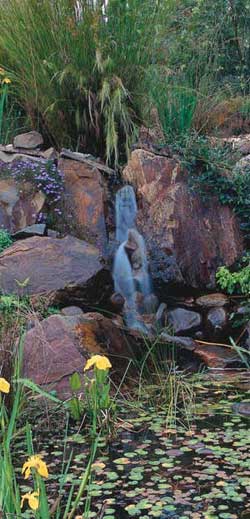 Sue & Melville - Stream and waterfall into natural pond with liner