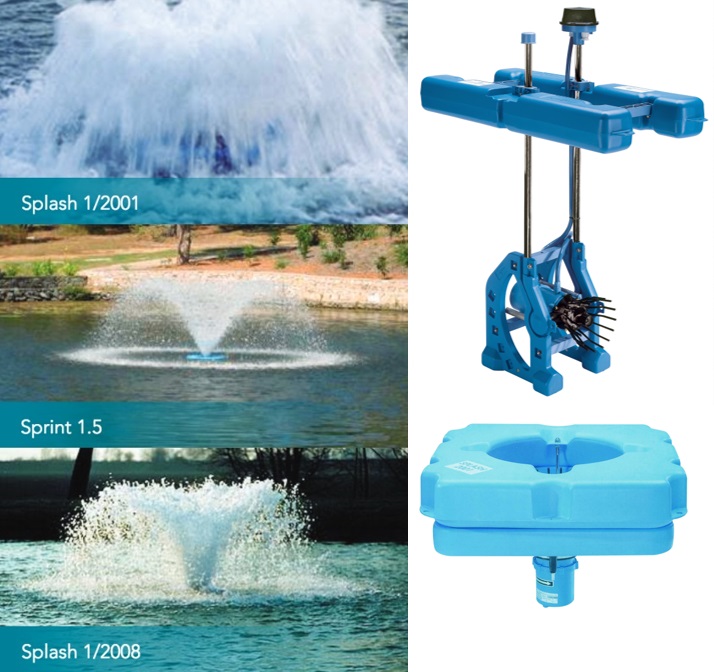 The Splash units are able to turn over large amounts of water per hour, this helps to add oxygen to the water which in turns help to break down the algae chains. The sprint and Northstar's are great as a fountain. The Force is used to break down the lower levels below by adding oxygen at a depth of up to 1 metre