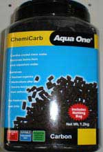 Aqua One ChemiCarb is available in a 1.2kg jar. It is Carbon in pellet form suitable for use in Pond and Aquarium filters to help remove toxins.