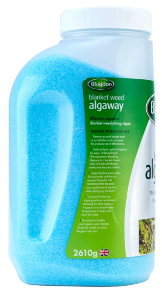 - Very easy to apply. Blagdon Blanket Weed Algaway is in the form of granules which come in a bottle, simply measure your required dosage, mix in a bucket with some pond water and pour into your pond