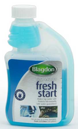 Blagdon Fresh Start is a tap water conditioner for removing chlorine and other toxins from mains water when topping up, doing water changes and filling new ponds.