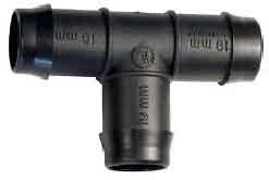 Barbed irrigation style tee suits pond hose and other low pressure applications including low density irrigation pipe.