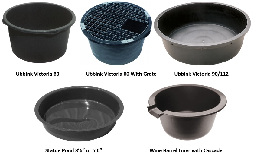 Here at Creative Pumps we have a wide variety of round plastic ponds including the Ubbink Victoria, the Statue range and Wine Barrel Liners.