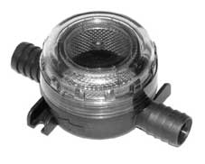 | Model No. 01740-002 (01740-102) Inline suction strainer 12.5mm hose barb, polypropylene base, polysulfone clear cover, stainless steel 40 mesh screen, Buna-N FDA O-Ring. Two lugs for secure mounting. Suits potable water. |
