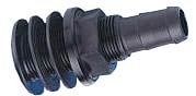 Female outlet or inlet fitting (with no thread on the female end, only a rounded hole) the other end is a male thread and hose tail. 2 large rubber washers to create a waterproof seal when clamped together. Ideal for hundreds of applications including Ponds, bait wells, bulkheads, walls etc