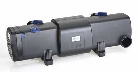 The Oase Bitron C range is the cream of the crop when it comes to Ultra Violet Clarifiers. They have a unique automatic self cleaning rotor which keeps the quartz sleeve that houses the UV lamp clear. In other brands, calcification, sediment and other debris can build up on the quartz sleeve. If half of the lamp is blocked, then your UV clarifier will only work half as well. It also features a clever bypass system which adjusts the flow going over the lamp to the optimal range even at high flow rates.