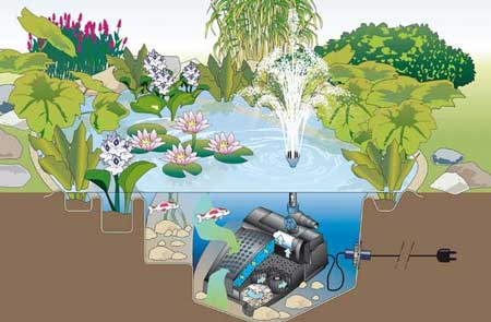 Small - Medium ponds with or without fish. Great for formal ponds or areas where is it hard to hide an external filter outside of the pond.