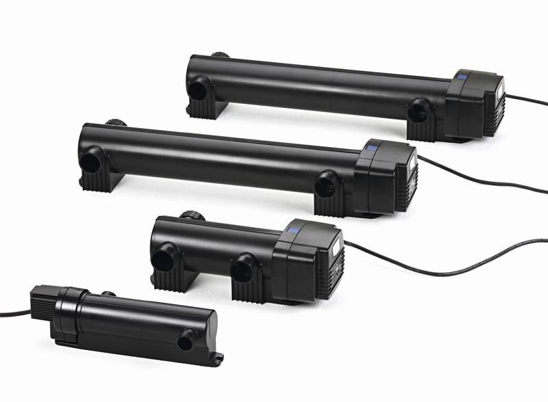 The Oase Vitronic range of Ultra Violet Clarifiers (UVCs) are well designed and of a very high build quality. Water is pumped (using a separate pump) from your pond, through the UVC and then into a filter or straight back into the pond, sometimes via a waterfall or feature. As the water passes by the internal UV lamp, the green algae is killed and your pond water is clearer when it returns.