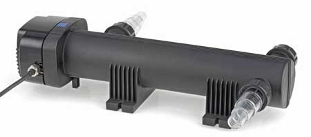The Oase Vitronic range of Ultra Violet Clarifiers (UVCs) are well designed and of a very high build quality. Water is pumped (using a separate pump) from your pond, through the UVC and then into a filter or straight back into the pond, sometimes via a waterfall or feature. As the water passes by the internal UV lamp, the green algae is killed and your pond water is clearer when it returns.