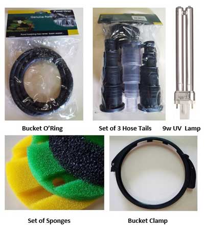 We have a large range of spares in stock for the Pond One Claritec filters. Replacement UV lamps, bucket o'rings and clamps, spare hose tails (set of 3) and replacement foam sets.