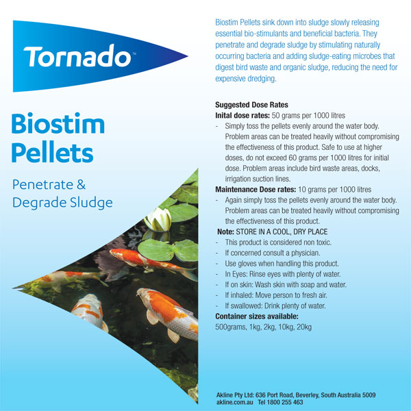 Tornado Biostim Pellets sink down into sludge slowly releasing essential bio-stimulants and beneficial bacteria. They penetrate and degrade sludge by stimulating naturally occurring bacteria and adding sludge eating microbes that digest bird waste and organic sludge, reducing the need for expensive dredging.